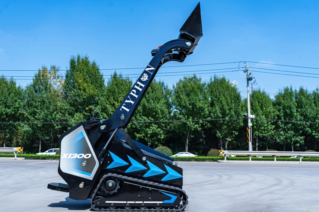 The TYPHON STOMP X1300 is a compact mini loader designed with ingenuity and powerful functionality, featuring a body width of only 900mm for agility in narrow spaces. Its boom features a Vertical Lift design, with high pin height 2352mm, enabling loading onto high-sided trucks.